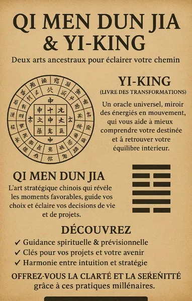 Le Qi Men Dun Jia est un art stratégique chinois qui aide à identifier les moments les plus favorables pour agir. Il offre une lecture précise des opportunités, des obstacles et des choix à privilégier afin de guider les décisions importantes et d’apporter davantage de clarté dans les projets.